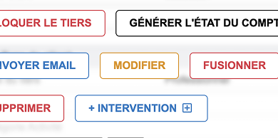 Les actions importantes à portée de click – sur toutes les fiches Tiers, Produits, Services, …